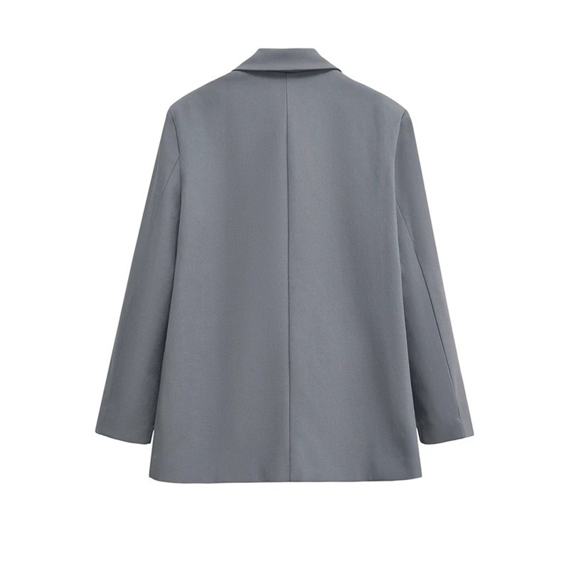 Dame elegant jakke med krave og lommer Enkeltfarvet selskabsjakke med knapper i polyester Stilig jakke i forskellige farver