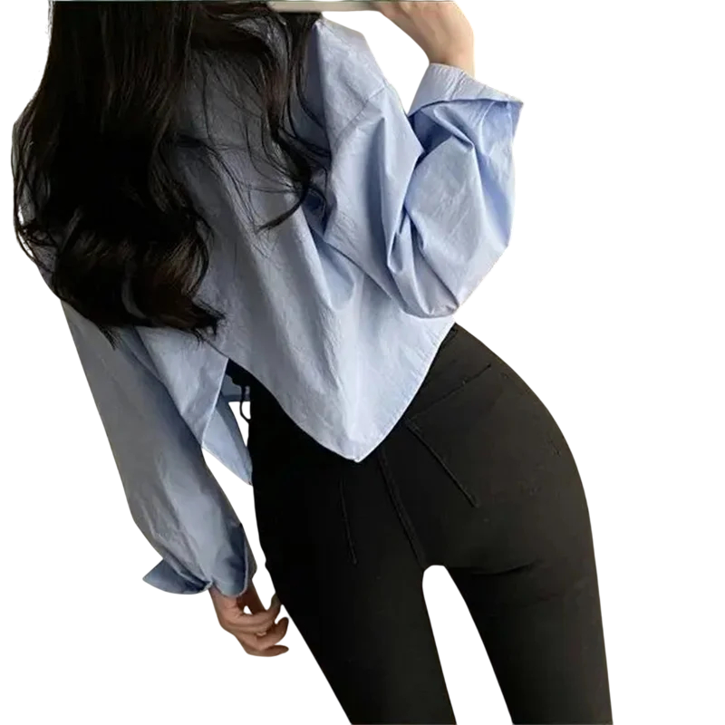 Forside Forside Tøj og tilbehør Dametøj Skjorter til kvinder Formelle skjorter til kvinder Dame elegant skjorte med lange ærmer og krave Enfarvet bluse i let polyester Stilfuld knaplukning til hverdag