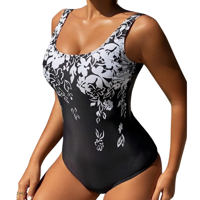 Ensfarvede badedragter med blomster mønster, O-hals og brede stropper. Det strækbare materiale sikrer komfort og perfekt tilpasning. Fuld beskrivelse