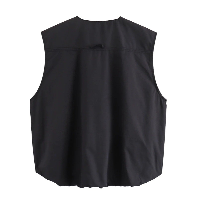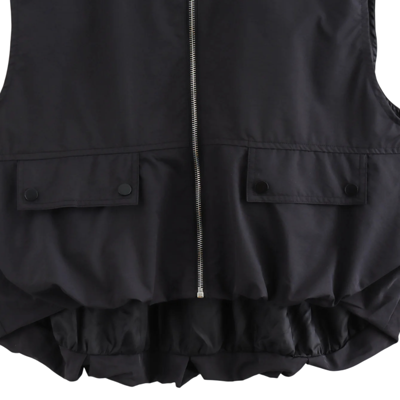 Praktisk og stilfuld dames vest med lommer og lynlås. Let polyester materiale, komfortabel pasform og elegant ensfarvet design til hverdagsoutfit. Fuld beskrivelse