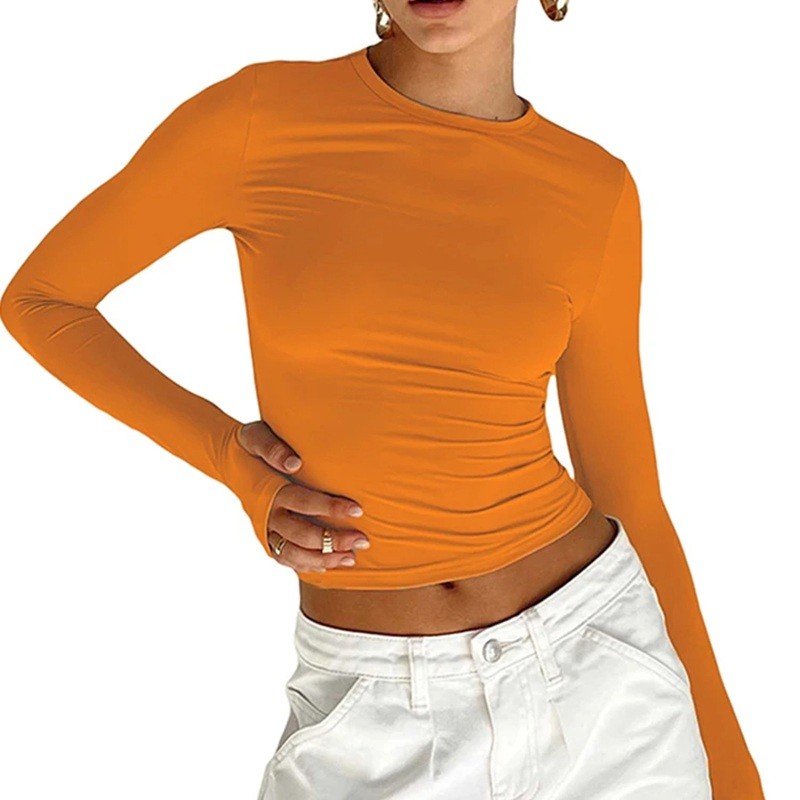 Dame langærmet T-shirt med tæt elastisk talje, moderigtigt afslappet tøj, elegant T-shirt til hverdagsbrug