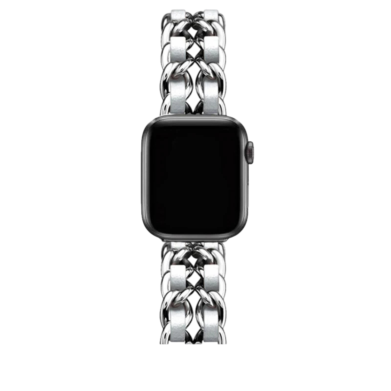 - Pakkens indhold: 1× dame metalrem i sølv til Apple Watch 42 mm
