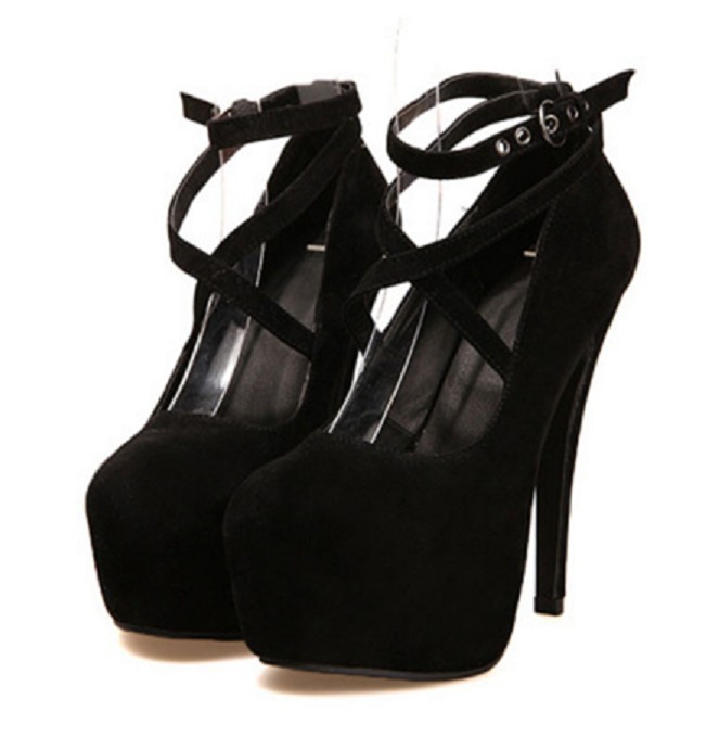 Disse elegante platformspumps er meget behagelige. Pumpsene fastgøres med en spænde.