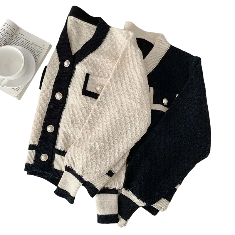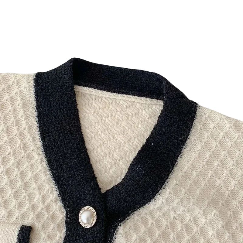 Dame prikket cardigan med lange ærmer i acetat Elegant sweater med knapper og lommer på brystet Universel størrelse Mode dame stil