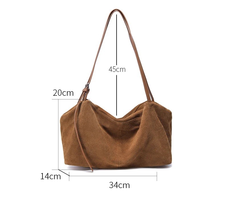 Denne dame semi-skind skuldertaske er designet til kvinder, der søger en kombination af elegance, plads og kvalitetsmaterialer. Med dimensionerne 34 × 14 × 20 cm giver den rigelig plads til hverdagens personlige ejendele uden at virke tung eller klodset. Den semi-skind overflade af okse læder giver tasken et luksuriøst og naturligt udseende, som nemt kan kombineres med både by- og mere elegante outfits. Den indvendige del med bomuldsfor virker behagelig og understøtter komforten ved daglig brug. Tasken er velegnet til arbejde, ærinder og fritid.
