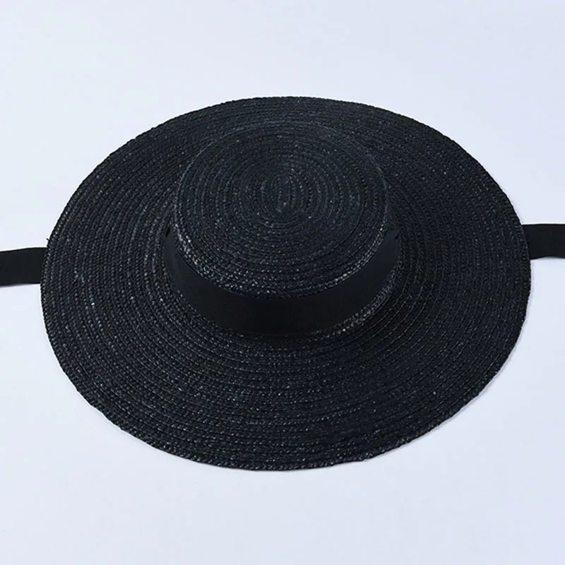 Dame Solhat 56-58 cm Skærm 10 cm Stråhat med Bånd Sommer Strandhat Solbeskyttelse