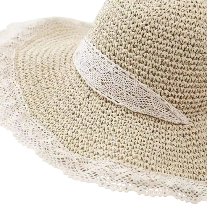 Dame sommer stråhat 30 x 10 x 8 cm Med blonder Lettere åndbar strandhat mod solen Elegant sommertilbehør