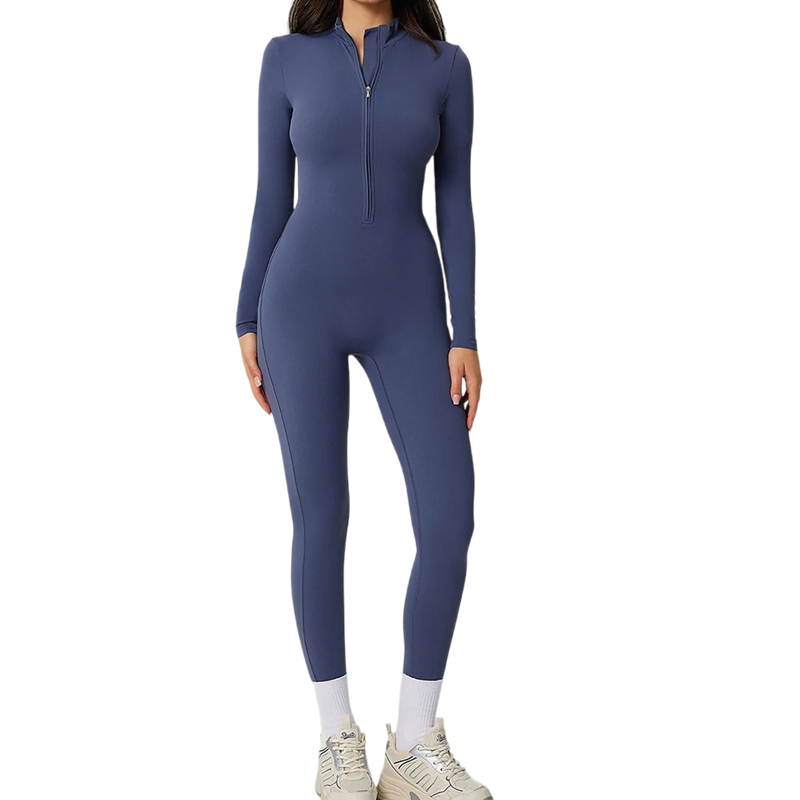 Funktionel dame sport overall ideel til fitness, yoga og løb, elastisk materiale med lynlås i uddybning sikrer komfort og bevægelsesfrihed. Fuld beskrivelse