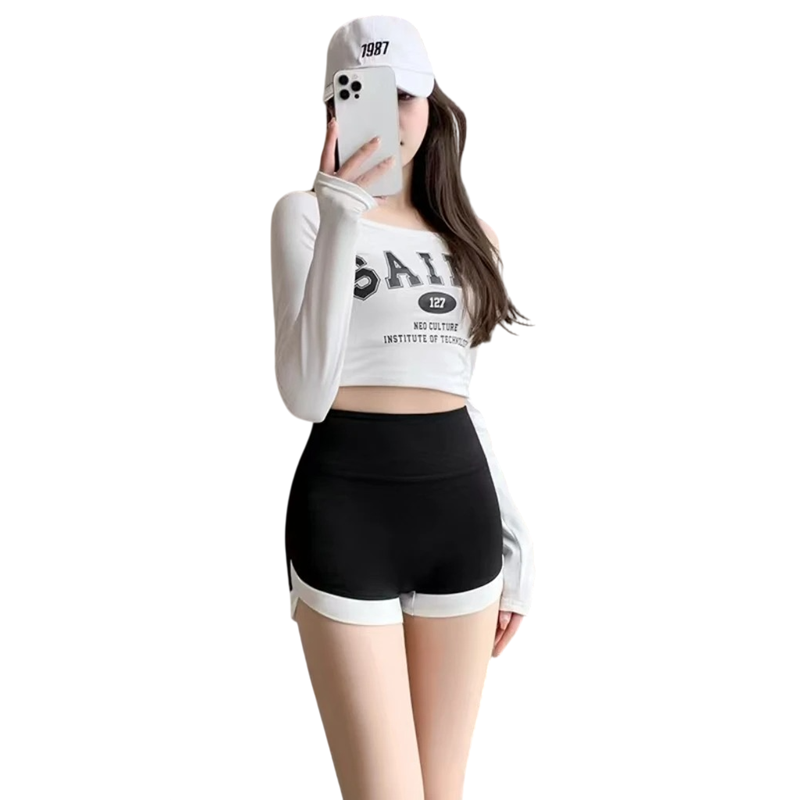 Forside Forside Tøj og tilbehør Dametøj Shorts til kvinder Dame sportshorts Med elastik Ensfarvet Design Med teksten suncomely bagpå Polyester Let funktionel snit til løb fitness