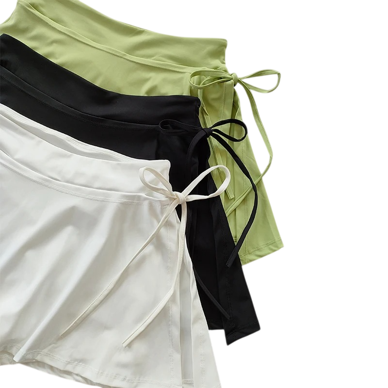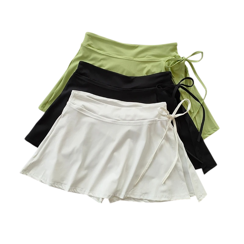 Forside Forside Tøj og tilbehør Dametøj Shorts til kvinder Dame sportskørt med shorts Enkeltfarvet Design Med sløjfe Med lommer Nylon Let funktionelt materiale Skørt med indvendige shorts