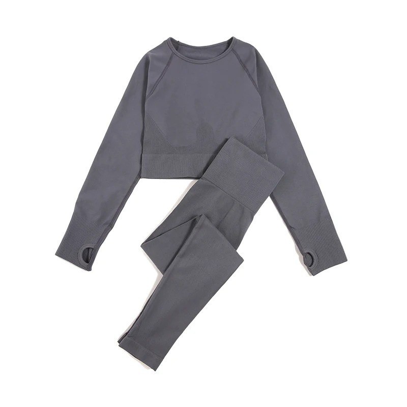 Forside Forside Tøj og tilbehør Dametøj T-shirts og toppe til kvinder T-shirts og toppe med lange ærmer til kvinder Dame Sportssæt Leggings og T-shirt med Lange Ærmer Enkeltfarvet Fitness Sæt i Nylon