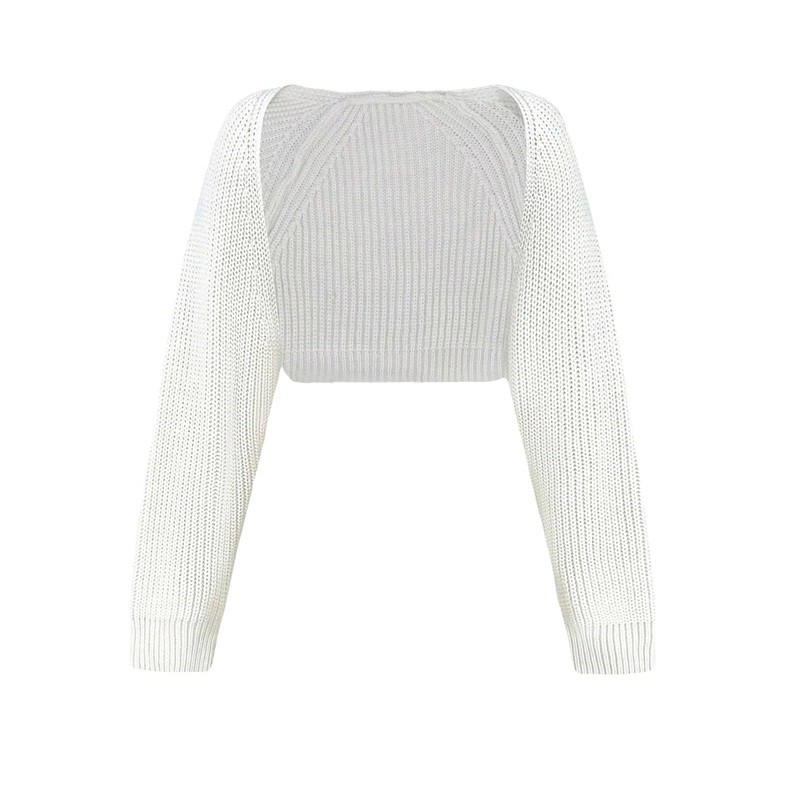 Forside Forside Tøj og tilbehør Dametøj Striktrøjer og cardigans til kvinder Cardigans til kvinder Dame strikket cardigan med lange ærmer Ensfarvet crop overtræk uden lukning Stilfuld sweater i akryl til daglig brug