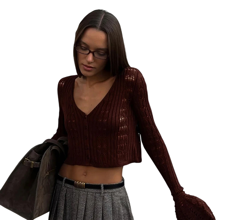 Denne cardigan kombinerer enkelhed og elegance, der passer til enhver lejlighed. Takket være det behagelige materiale er den ideel til daglig brug og giver komfort, stil og feminin charme i ét. Du kan kombinere den med jeans for et afslappet look eller med en nederdel for et sofistikeret outfit. Hver detalje er designet til at fremhæve din figur og supplere din personlige stil. Denne strikkede cardigan vil være et populært supplement til din garderobe i mange sæsoner.