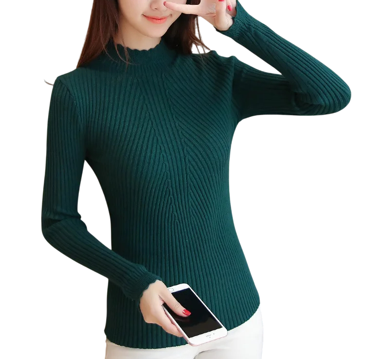 Dame strikket sweater i bomuld og polyester med O-hals En ensfarvet elegant sweater med lange ærmer Universel størrelse til hverdagens brug