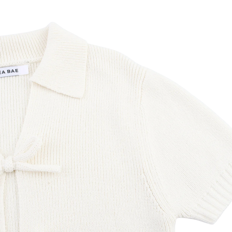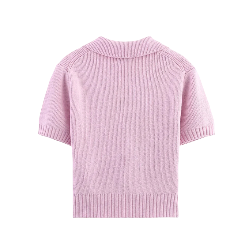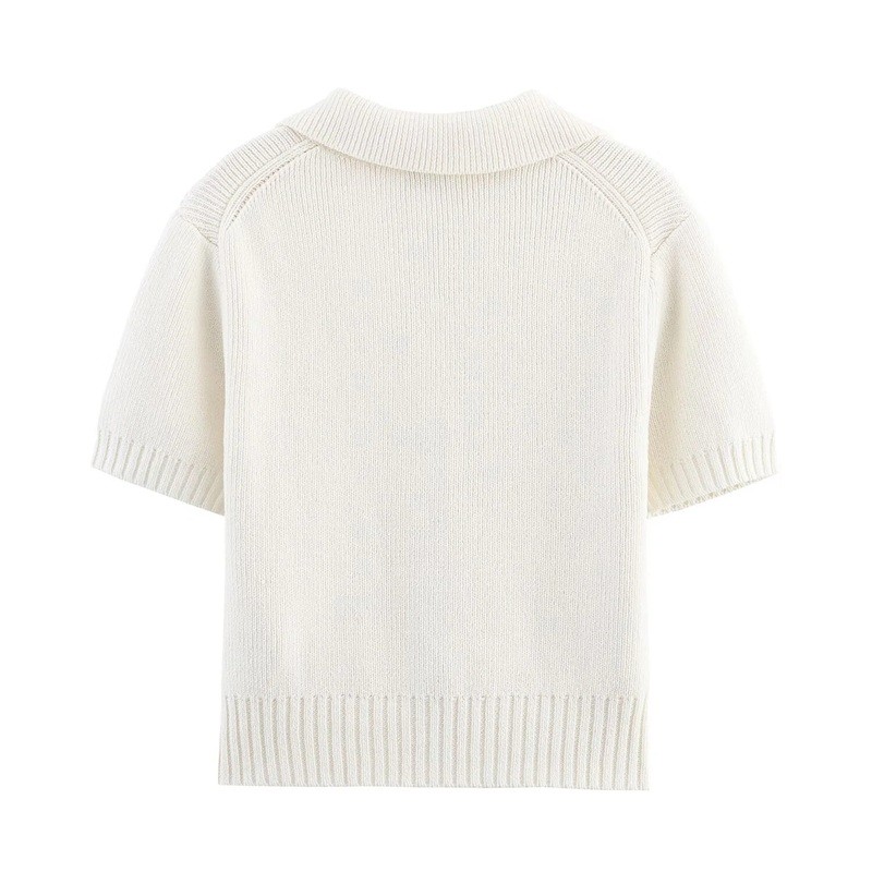 Dame sweater crop top med krave Kort ærme Tre snore til binding foran Ensfarvet sommer top Forskellige farver Polyester Bomuld