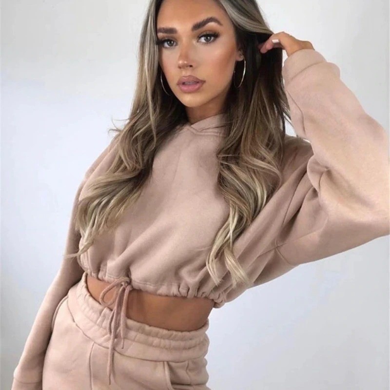 Forside Forside Tøj og tilbehør Dametøj Hættetrøjer til kvinder Dame sweatshirt og joggingbukser B990