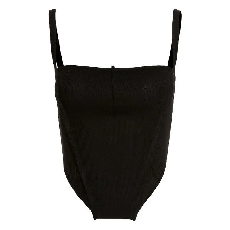 Dame T-shirt ensfarvet Crop top Rund hals Tynde stropper Polyester spandex strækbar moderne sommer top