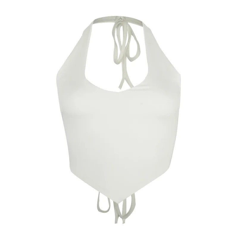Moderne crop top med V-hals og brede stropper omkring halsen tilbyder elastisk materiale, komfort og elegant sommerstil. Fuld beskrivelse