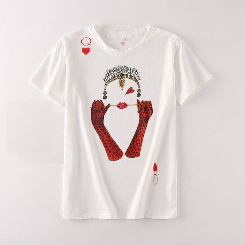 Dame-T-shirt med dronningeprint