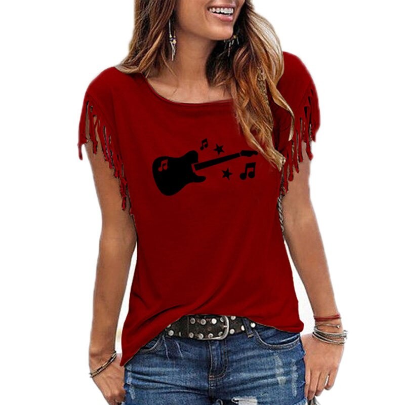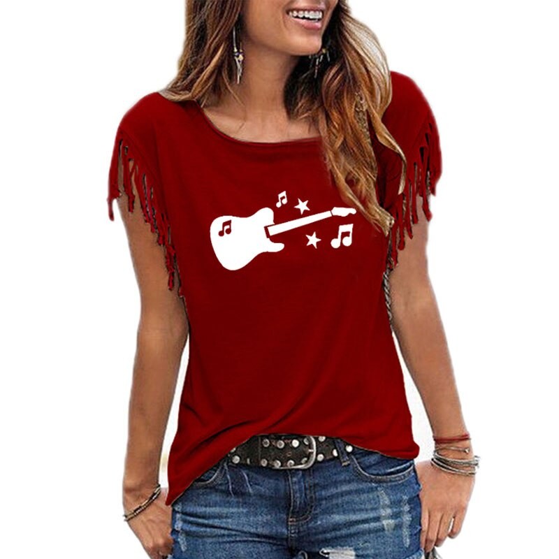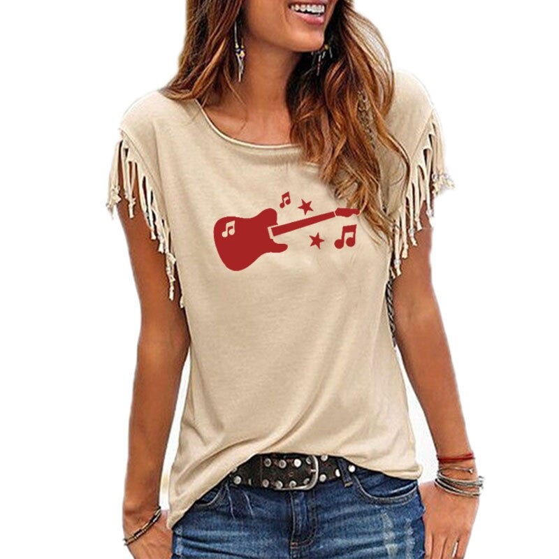 Dame T-shirt med guitarprint