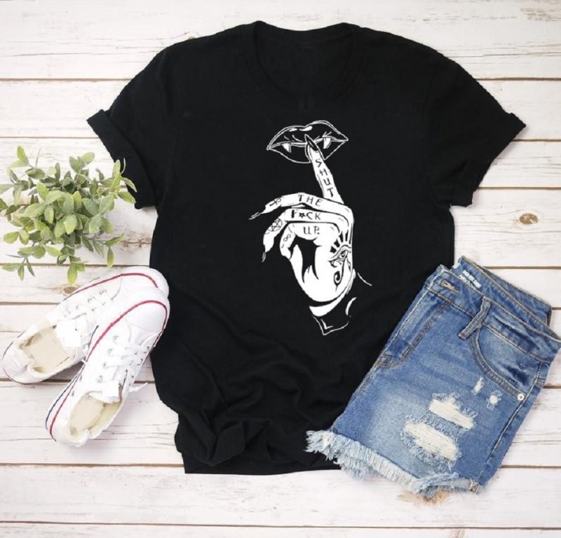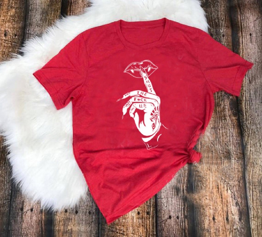 Dame T-shirt med håndmotiv