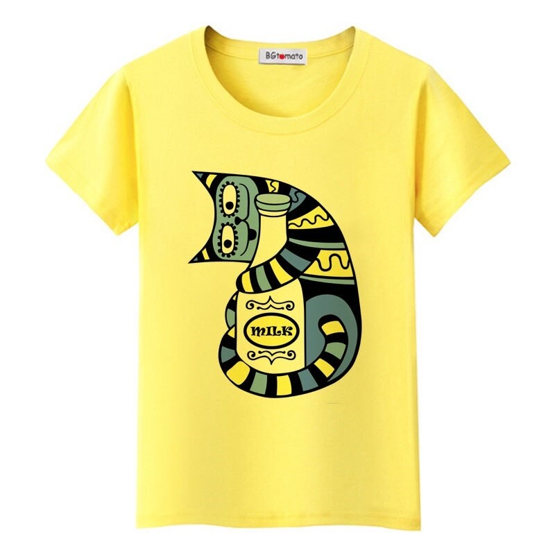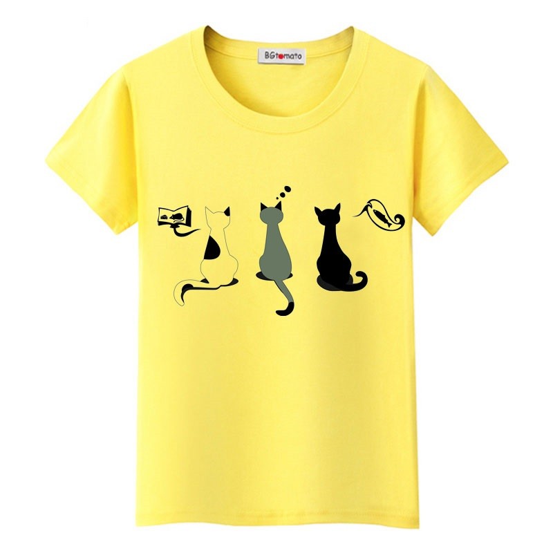 Dame T-shirt med katteprint