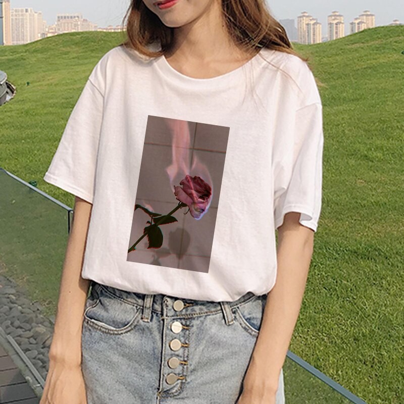 Dame T-shirt med roseprint