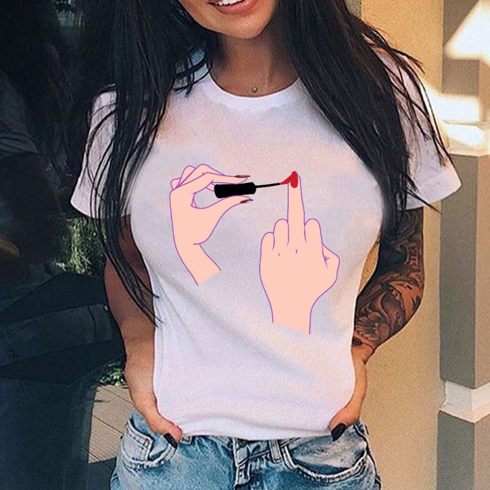 Dame T-shirt med sjovt håndtryk