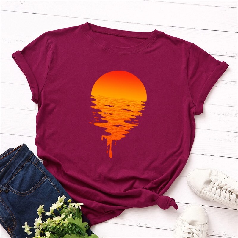 Dame T-shirt med solnedgangsprint