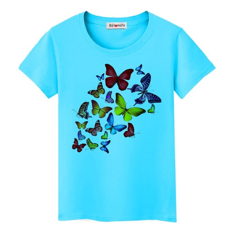 Dame T-shirt med sommerfugleprint