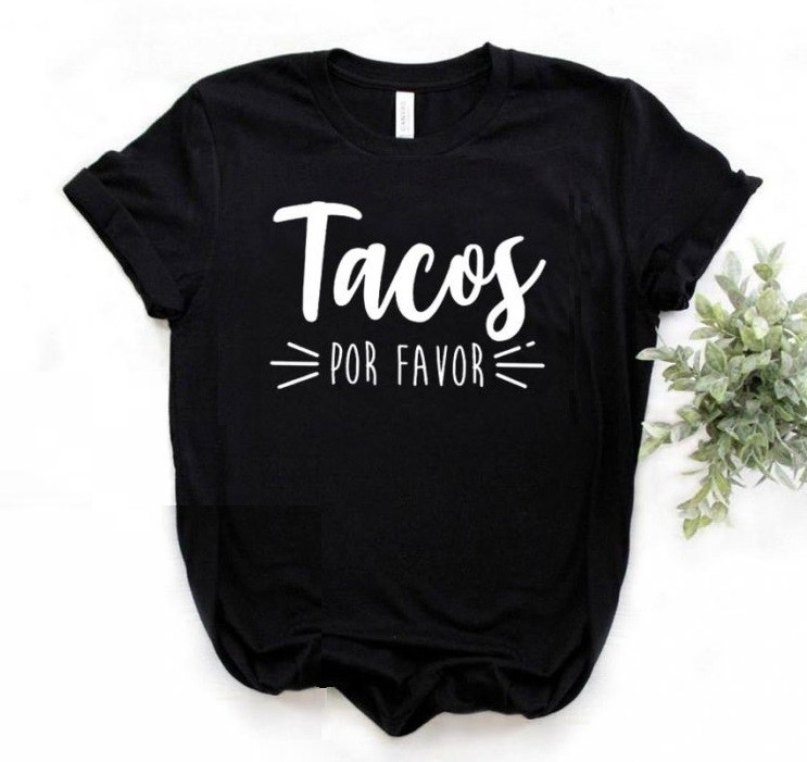 Dame-T-shirt med tacos-print