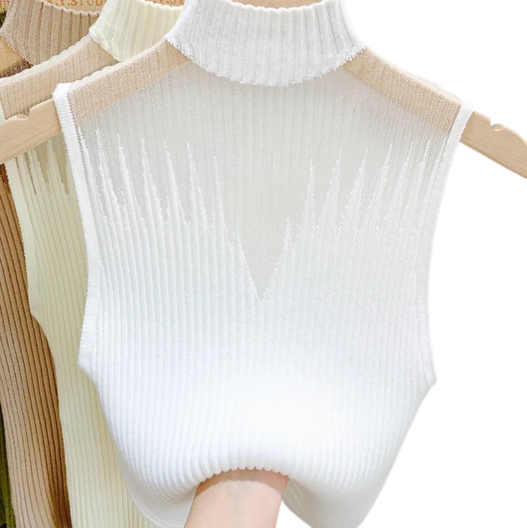 Elegant dame T-shirt med rullekrave og let halvtransparent del på brystet, universel størrelse, ideel til daglig og aftenbrug. Fuld beskrivelse