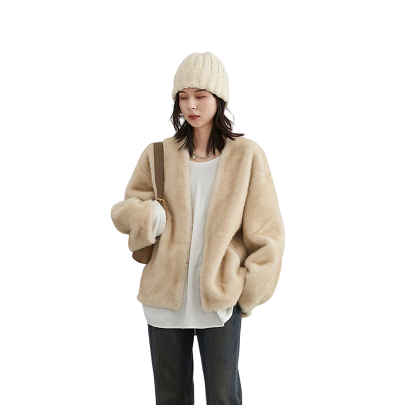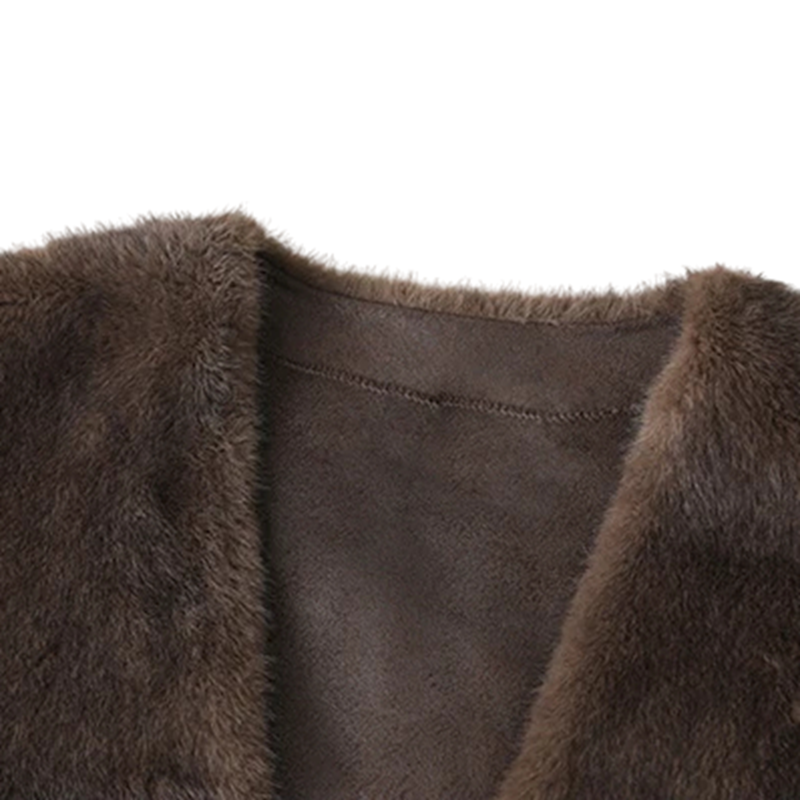 Denne dame vinterpels er et stilfuldt, komfortabelt og praktisk valg til de kolde måneder. Den er designet til at give maksimal varme og komfort, mens dens bløde pelsoverflade giver et elegant udseende, der er passende til både hverdag og fest. V-udskæringen virker blød og feminin, hvilket fremhæver det samlede design. Praktiske lommer gør det muligt at opbevare småting eller varme hænderne på kolde dage. Universal størrelse tilpasser sig komfortabelt til forskellige kropstyper, hvilket gør den til et fremragende valg for et bredt spektrum af brugere.