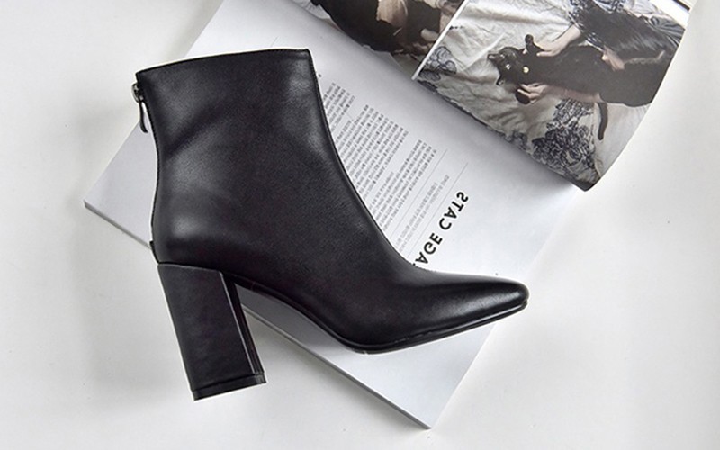 Disse ankelstøvler med blokhæl og pels indeni holder dig varm.