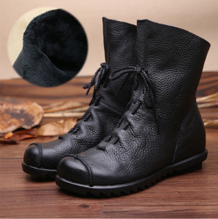 Dameankelstøvler i læder med pelskant