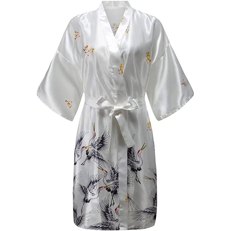 - Pakkens indhold: 1x dame silke badekåbe med fuglemotiv