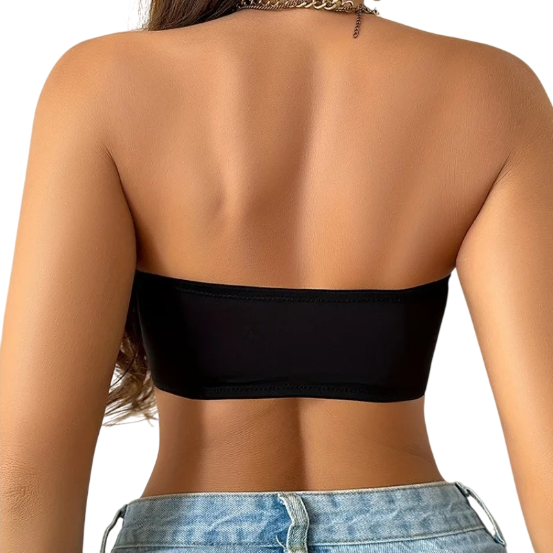 Undertrøje uden stropper med lukning foran og glatte skåle. Velegnet under kjoler og toppe for et rent udseende uden linjer. Fuld beskrivelse