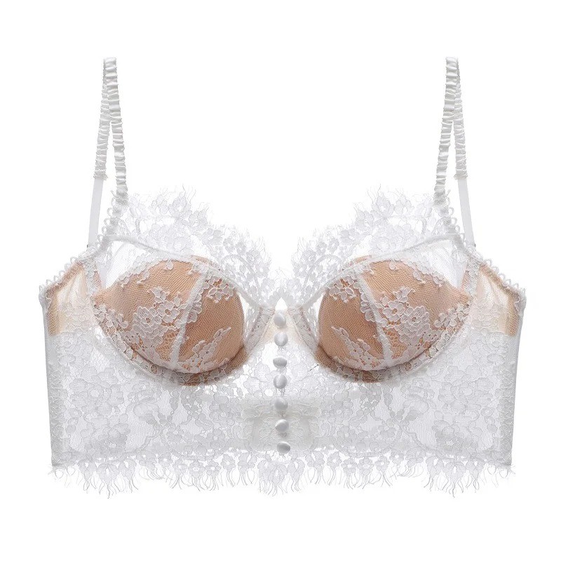 Forside Forside Tøj og tilbehør Dametøj Undertøj til kvinder Bh'er til kvinder Push-up bh'er til kvinder Damebh med blonder uden bøjler formede skåle elastan nylon behagelig til daglig brug