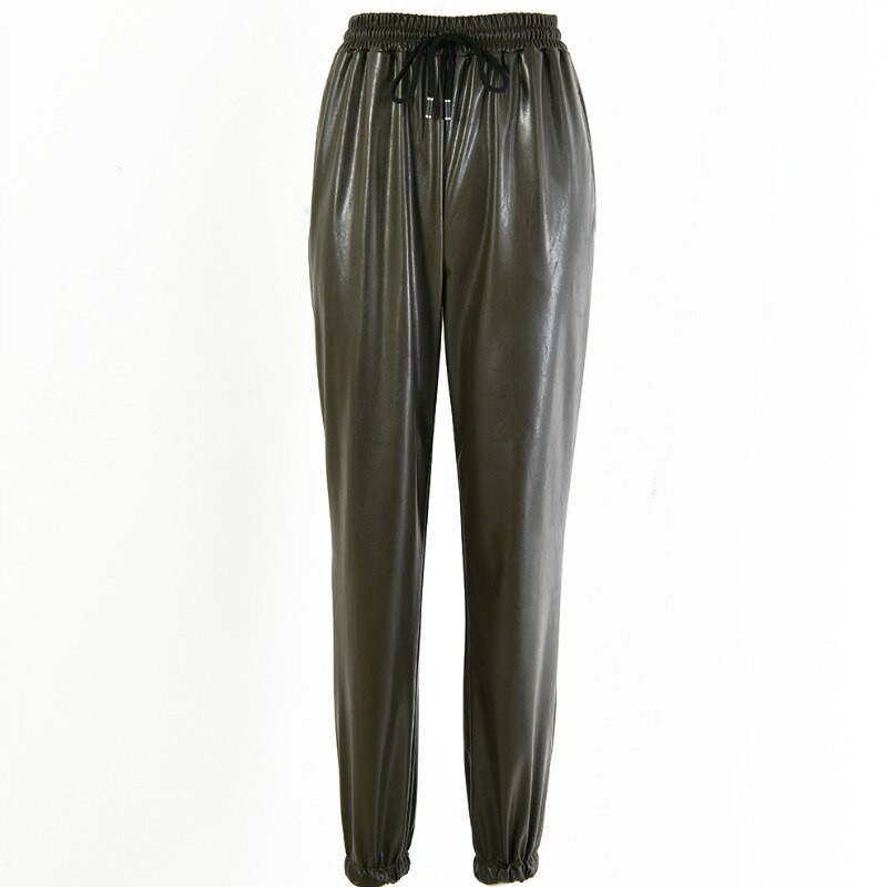Forside Forside Tøj og tilbehør Dametøj Bukser til kvinder Damebukser med elastisk talje i kunstlæder