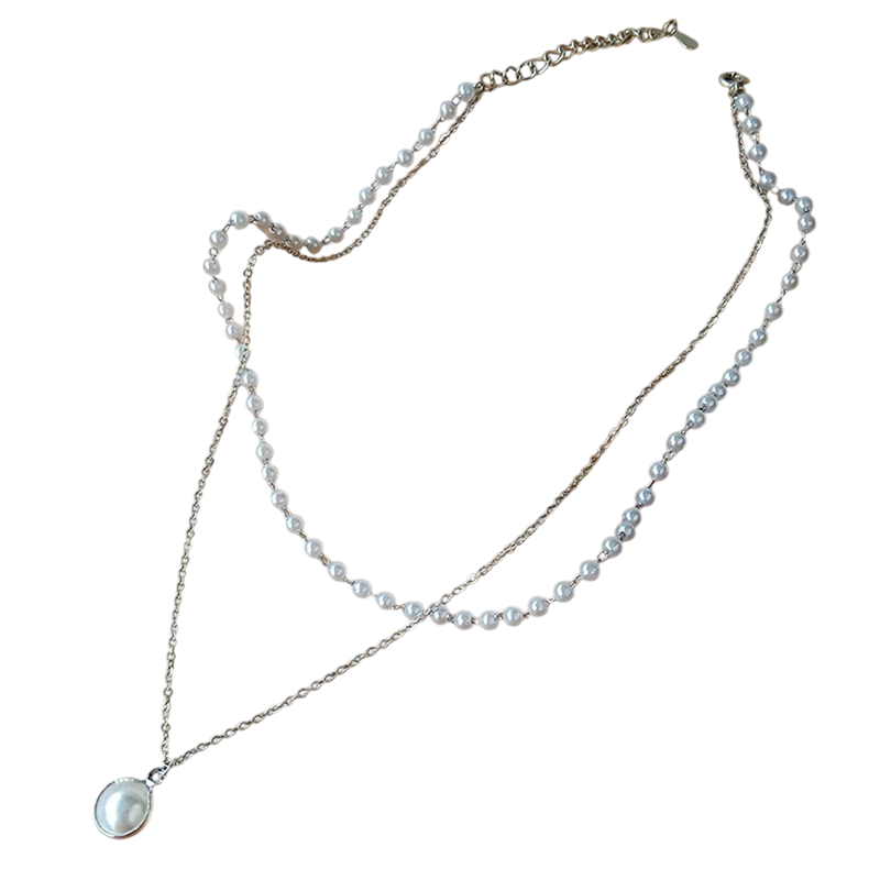 Damehalskæde med perler og vedhæng i zinklegering, fint lagdelt halskæde til daglig brug og stilfulde kombinationer