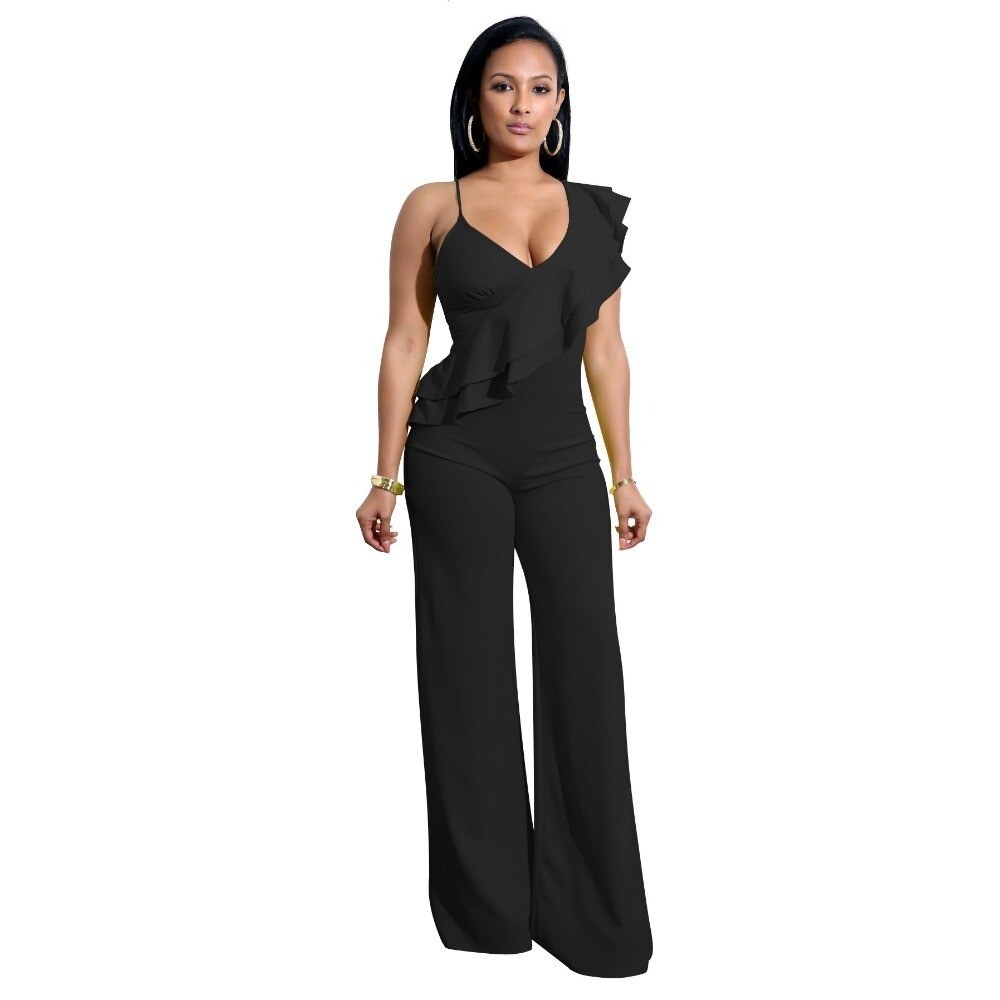 Damejumpsuit med flæser