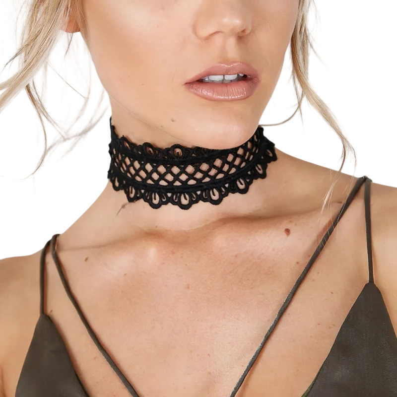 Denne halskæde er velegnet som accessory til daglig brug samt til sociale begivenheder. Takket være sin enkelhed virker den ikke forstyrrende og kan kombineres med forskellige typer tøj. Lace-designen bringer en interessant visuel effekt uden behov for yderligere elementer. Den sorte udførelse sikrer universel anvendelse. Chokeren er et passende valg for at supplere stilen uden markante ændringer.