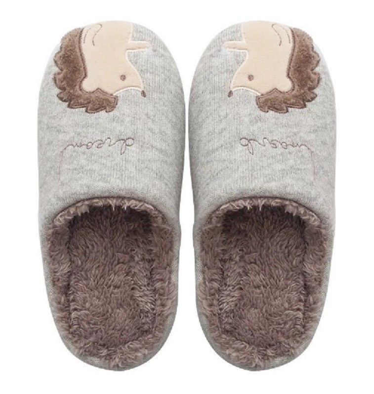 Disse behagelige hjemmesko med et broderet pindsvin er velegnede til brug derhjemme eller i sommerhuset.
