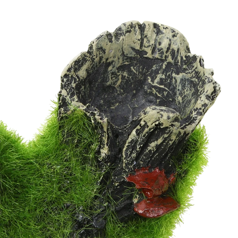 Denne dekoration til akvarium i form af en hule eller hul stamme med realistisk kunstig mos bringer et stykke undervandsnatur ind i dit akvarium. Den giver fiskene et skjulested, legeplads og et sted at hvile, hvilket fremmer deres naturlige adfærd og reducerer stress. Den er lavet af høj kvalitet harpiks, som er holdbar, opløses ikke i vand og afgiver ingen skadelige stoffer. Designet efterligner det naturlige miljø og er ideelt til ferskvands- og saltvandsbeholdere. Overfladen med mosimitation giver dekorationen et naturligt udseende og passer let sammen med andre elementer i akvariet.
