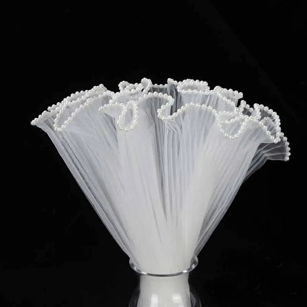 Dette dekorationpapir 4 m x 28 cm er det ideelle valg for alle, der beskæftiger sig med kreativ skabelse, dekoration og blomsterindpakning. Det er lavet af bølget net, som giver dekorationerne et unikt udseende og tekstur. Dette papir er prydet med hvide perler på kanten, hvilket giver det et elegant og sofistikeret udseende, der er perfekt til særlige lejligheder. Velegnet til bryllupper, fødselsdage og andre fejringer, men også til kreative projekter som fremstilling af blomsterarrangementer eller gaveindpakning.
