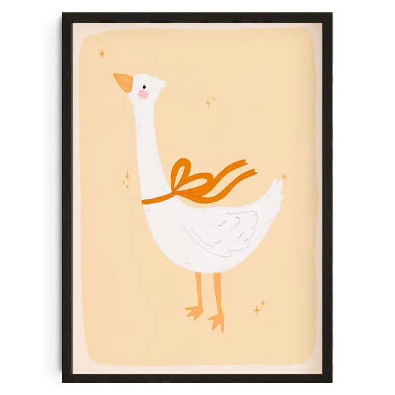 Dekorativ plakat med illustration af en gås 40 x 50 cm tryk på lærred beige baggrund vægbillede til børneværelse og lejlighed uden ramme
