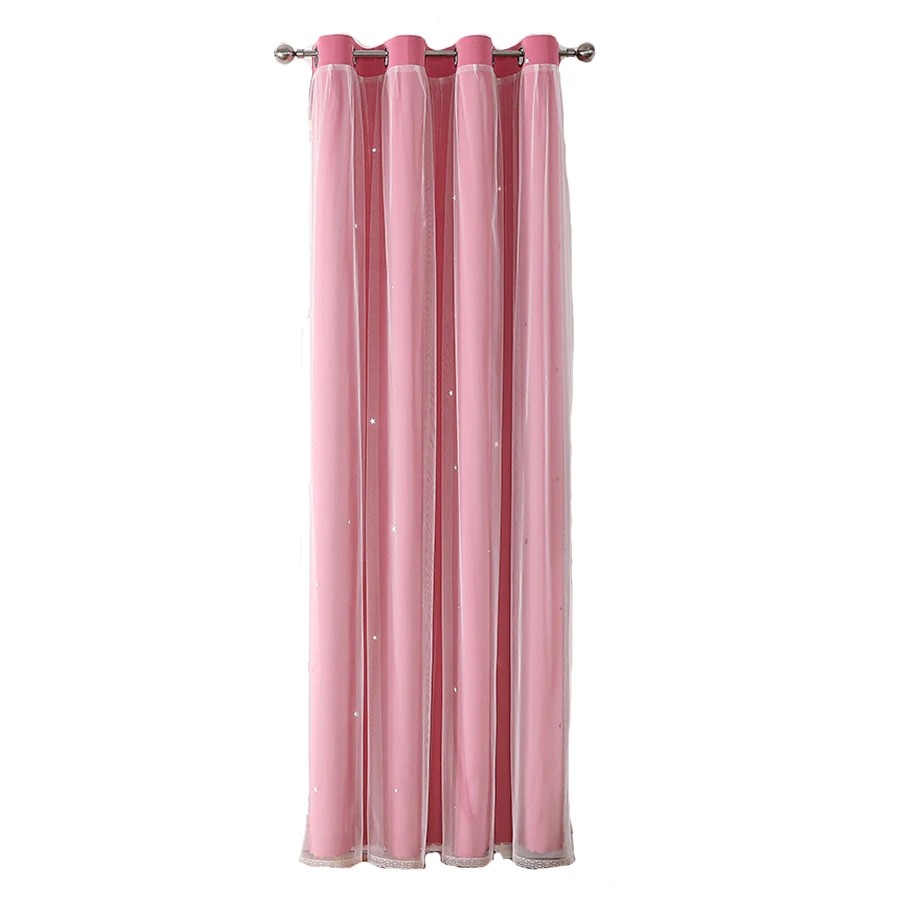 Dobbeltlags børnegardiner med stjerner 132 x 274 cm Uigennemsigtige gardiner med gennemsigtige gardiner til børneværelset Pige gardiner med ringe