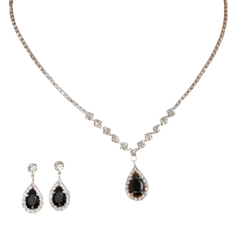 Elegant dråbeformet sæt til bryllupper, banketter og fester med justerbart halskæde og fine øreringe for et sofistikeret udseende. Fuld beskrivelse