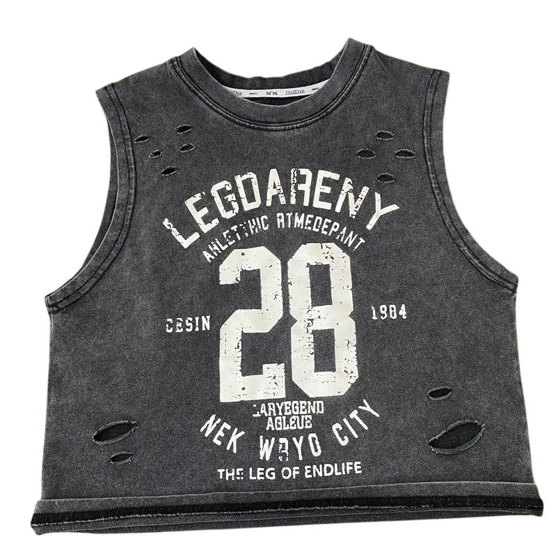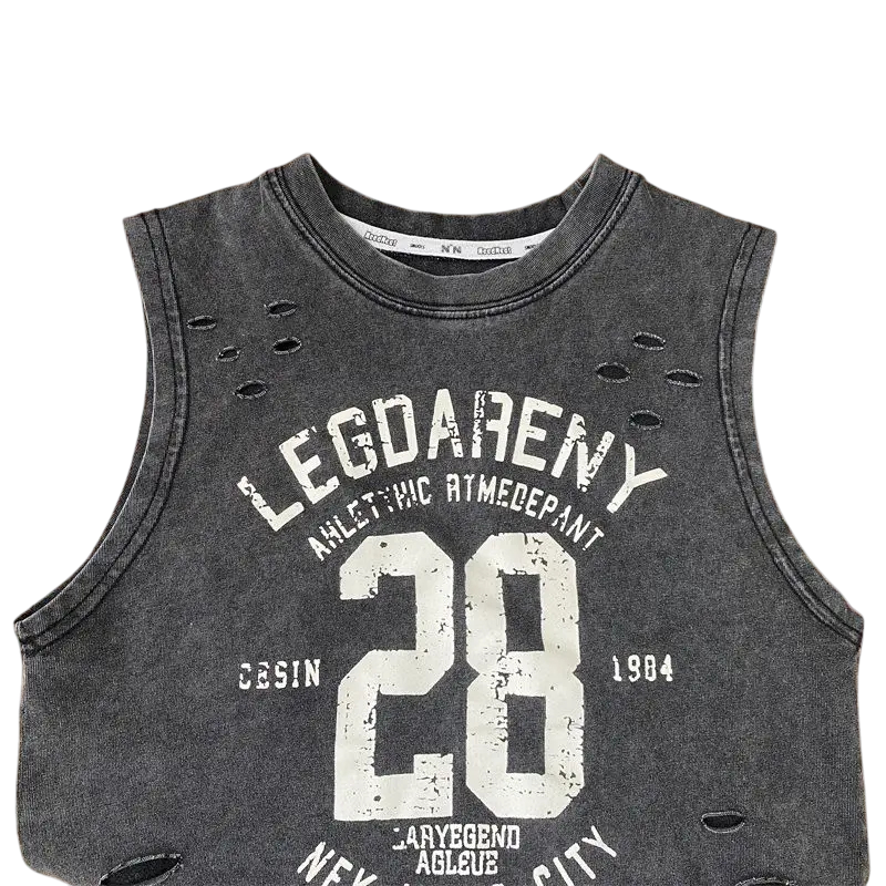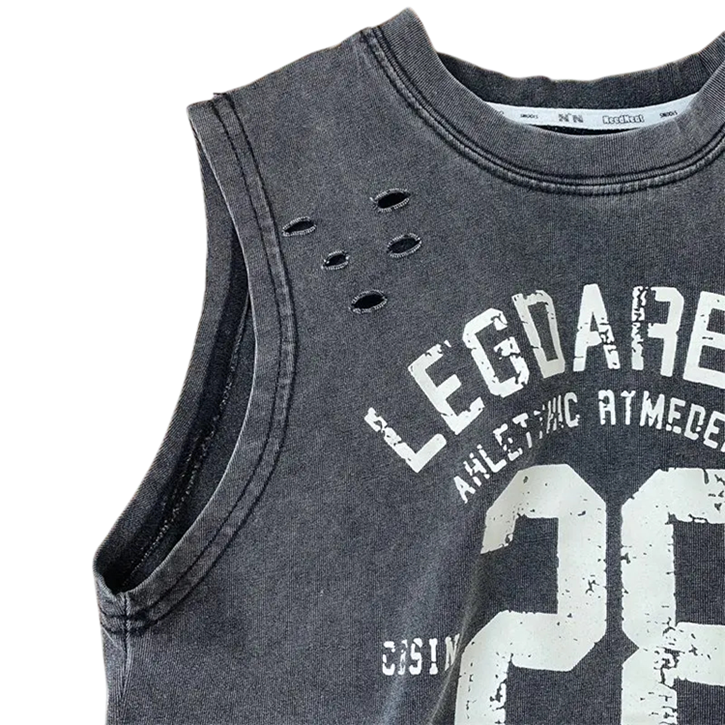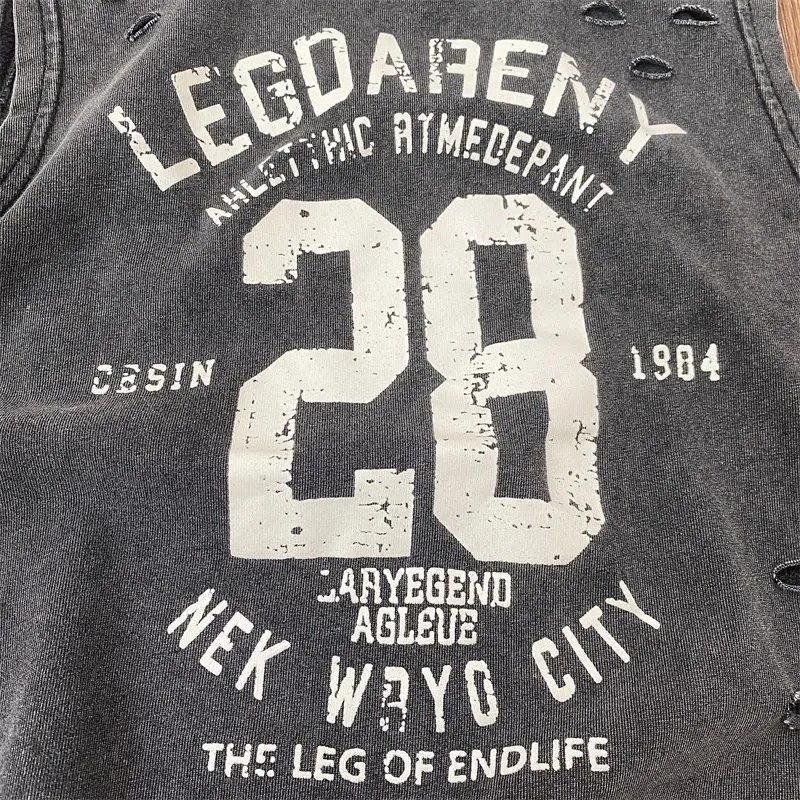 Drenget sommer top uden ærmer 100% bomuld Perforeret åndbar tanktop med tryk og tekst Stilfuld sportstop i forskellige farver