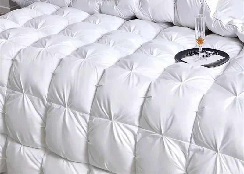 Varmt vintertæppe med fyld af hvid gåsefjeder er designet til maksimal komfort i de koldere måneder. Den luftige struktur af fyldet hjælper med at bevare varmen og giver samtidig en behageligt let følelse, når man er dækket til. Den quiltede design hjælper med at fordele fyldet jævnt og opretholde dets volumen.
